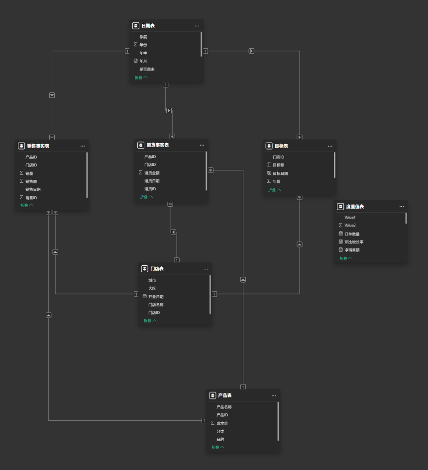 总销售额 = SUM( '销售事实表'[销售额] )总销量 = SUM( '销售事实表'[销量] )订单数量 = COUNTROWS( '销售事实表' )平均客单价 = DIVIDE( [总销售额], [订单数量] )②退货相关指标: