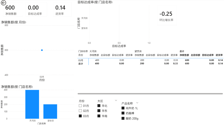净销售额 = [总销售额] - [总退货金额]④目标达成分析